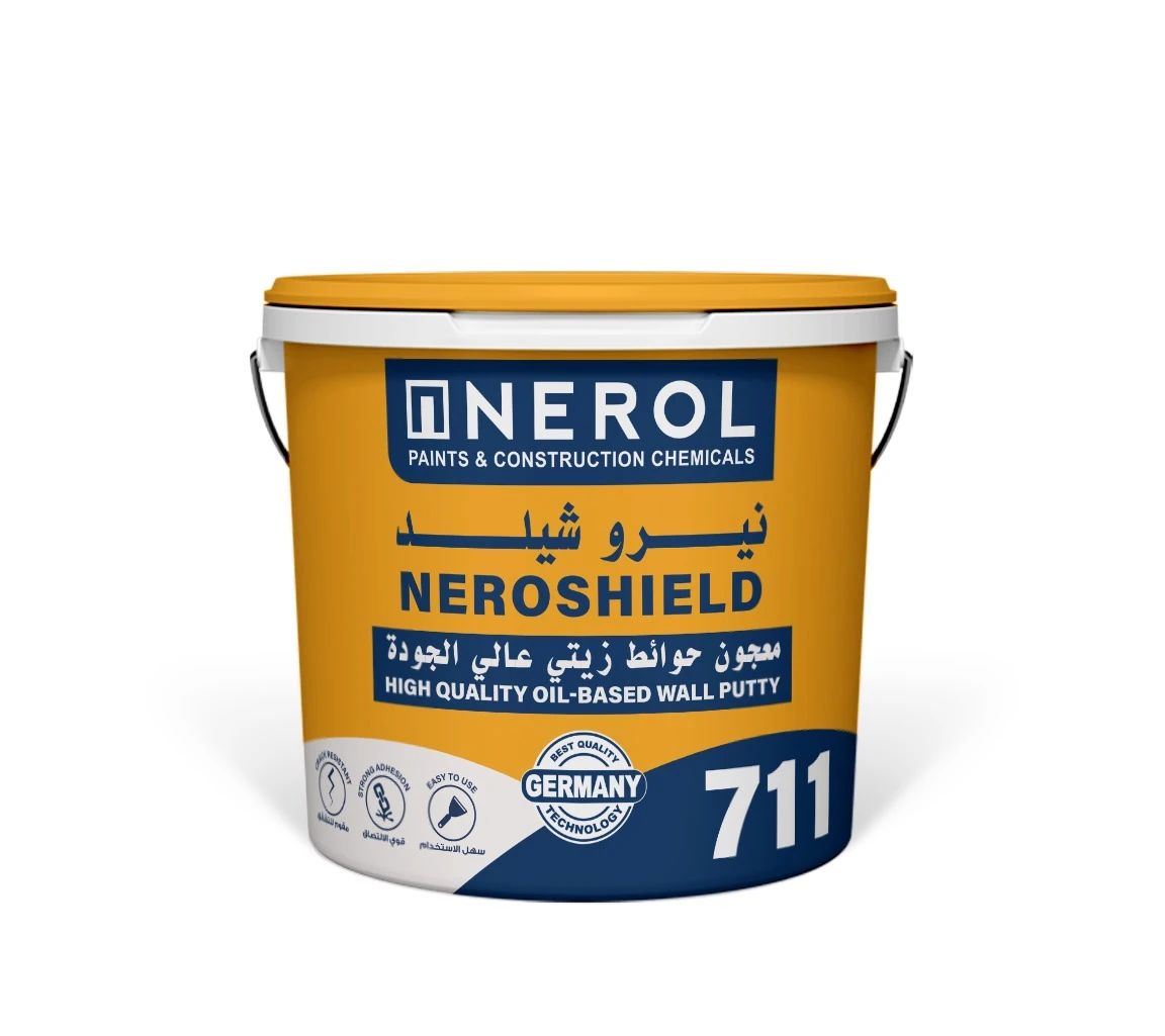 نيرو شيلد 711 هو معجون حوائط زيتي احترافي من شركة نيرول، مصمم لتجهيز الأسطح قبل الطلاء النهائي، ويتميز بجودة عالية وأداء قوي يمنح الجدران نعومة مثالية وقاعدة متينة لنتائج تشطيب احترافية.