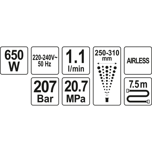 جهاز رش الدهانات بجودة عاليه واقتصادي من الضربه الاولى كانه مسدس رش حراري الجهاز يعمل بقوة 650 وات كهربائي 220 الي 240 فولت ضغط بار الرش 207 بار تغطيه رش المسدس 31 سم يمكن رش 1 لتر في الدقيقه طول لي الرش 7 متر ضغط عالي ضمانه سنه موديل 82560