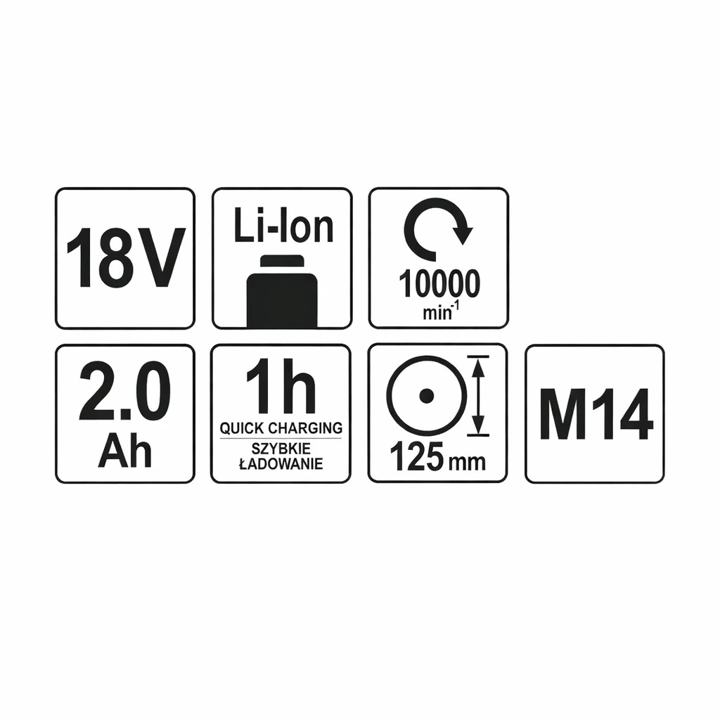 جلخ بولندي خازن بطاريه ليثيوم 18 فولت اصليه ضمانه سنه عالي الجودة مسمار 14 سرعه 10000 قطر 125 موديل 82826
