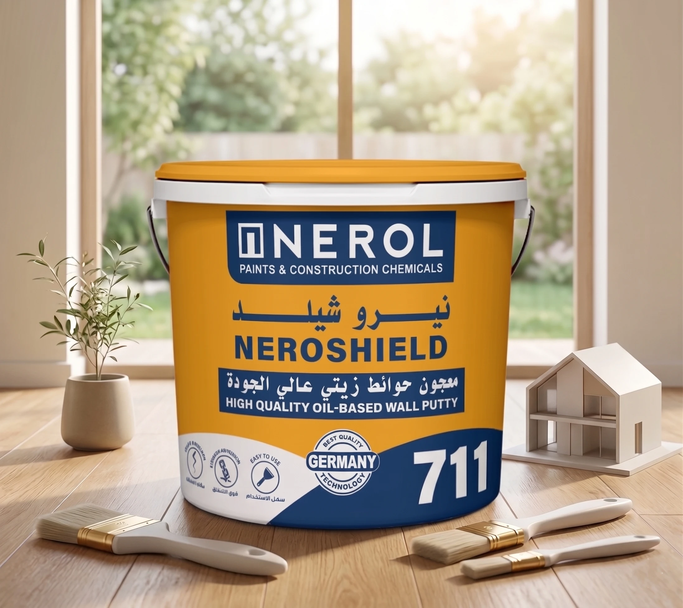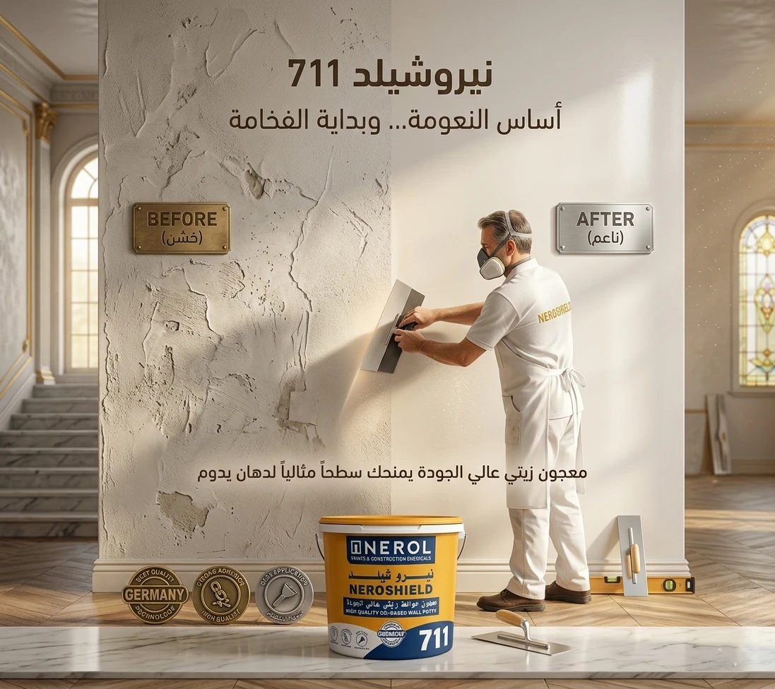 يوفر نيرو شيلد 711 قاعدة قوية وناعمة للدهان، مما يضمن مظهر نهائي فخم ومتناسق، ويُعد خطوة أساسية لأي تشطيب احترافي عالي الجودة.